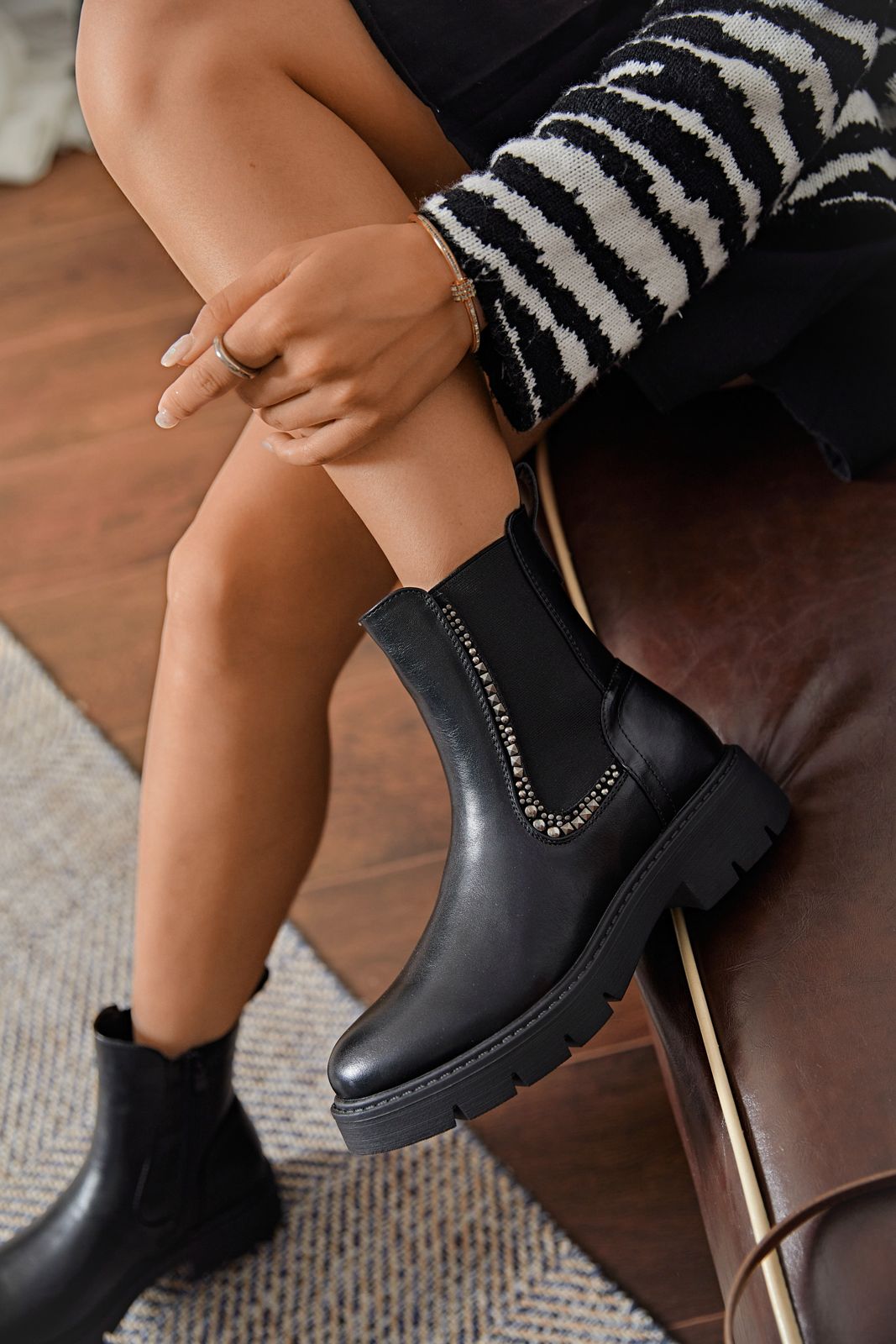 “Pièce incontournable de la saison, ces bottines allient style et caractère. Leur design raffiné apporte une touche moderne à vos tenues, qu’elles soient décontractées ou élégantes. Faciles à associer, elles se portent aussi bien avec un jean qu’avec une jupe ou une robe, pour un look chic et affirmé en toutes circonstances.”