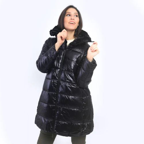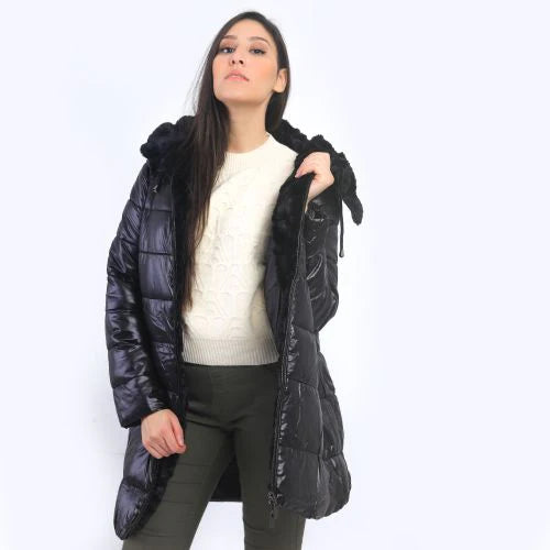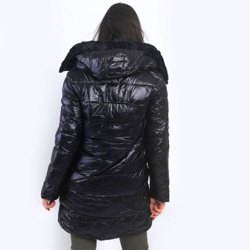 Maps Vestes Longue À Capuche En Fourrure - Noir